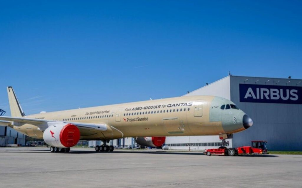 Qantas‘ erster Ultra-Langstrecken-A350 ist aus dem Airbus-Fließband in Toulouse, Frankreich, aufgetaucht und bringt das lang erwartete Project Sunrise der Fluggesellschaft näher an die Realität.