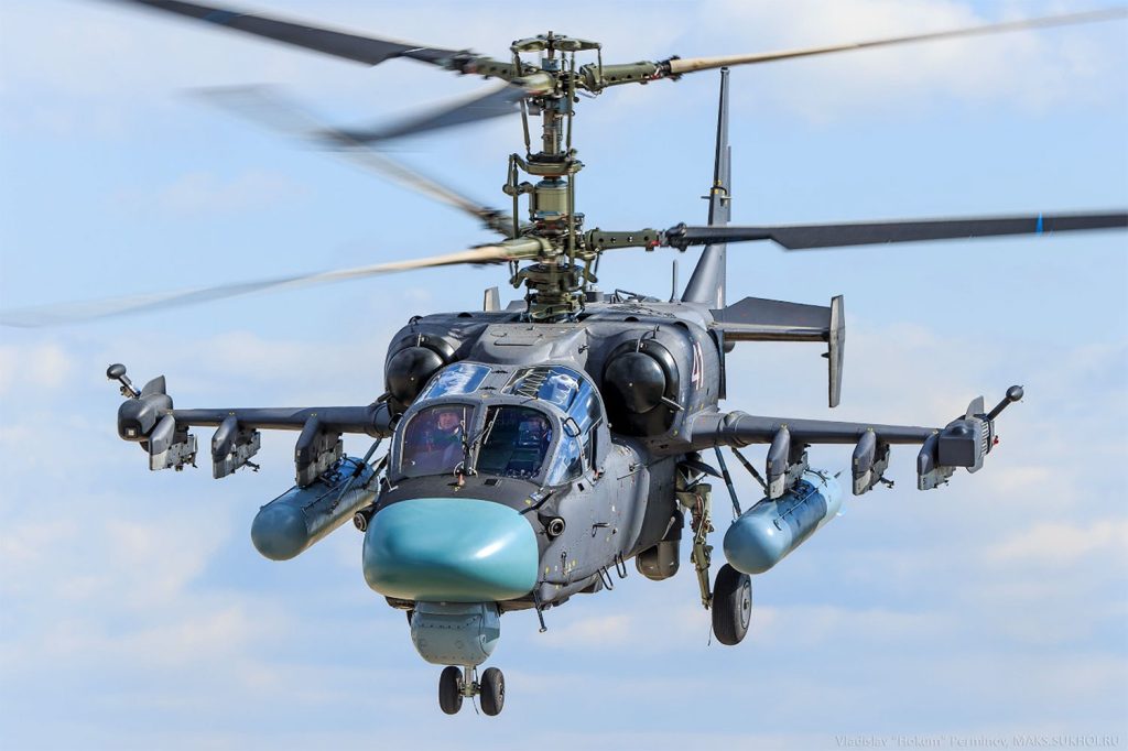 Der Kamov Ka-52 Alligator ist ein russischer zweisitziger Allwetter-Kampfhubschrauber, der vom Kamov Design Bureau als äußerst wendige Ableitung des einsitzigen Ka-50 entwickelt wurde. Ein charakteristisches Merkmal seines Designs ist der Einsatz von zwei koaxialen, gegenwärtig rotierenden Hauptrotoren, die auf einzigartige Weise den Bedarf an einem Heckrotor überflüssig machen und so wesentlich zu seiner Wendbarkeit beitragen. Der Hubschrauber wird von zwei Klimov VK-2500 Turboshaft-Motoren angetrieben und verfügt über einen breiten Rumpf, um die zweiköpfige Besatzung nebeneinander sitzen zu lassen. Hauptsächlich für Angriffe, bewaffnete Aufklärung und Schlachtfeldkoordination konzipiert. Seine Einsatzfähigkeit wird durch moderne Avionik, ein Glascockpit mit Multifunktionsanzeigen und fortschrittliche Sensorsysteme wie nasen- und mastmontierte Radarsysteme, FLIR-Kameras und Laserzieler für effektive Tag-/Nacht- und Allwetteroperationen verbessert. Ein bemerkenswertes Sicherheitsmerkmal, das einzigartig für einen Kampfhubschrauber ist, ist die Integration von Schleudersitzen für beide Besatzungsmitglieder, was das vorherige Abwerfen der Hauptrotorblätter erfordert.